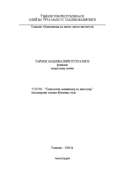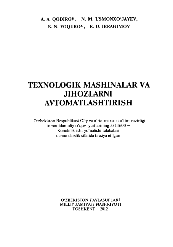 Texnologik mashinalar va jihozlar